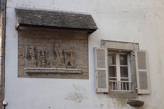 Representação em baixo-relevo da “Anunciação” incrustada em fachada em Hennebont. França.
