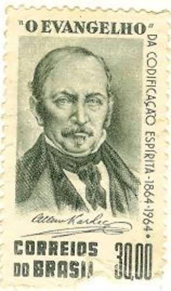Selo alusivo ao Centenário de O Evangelho Segundo o Espiritismo. Brasil 1964.